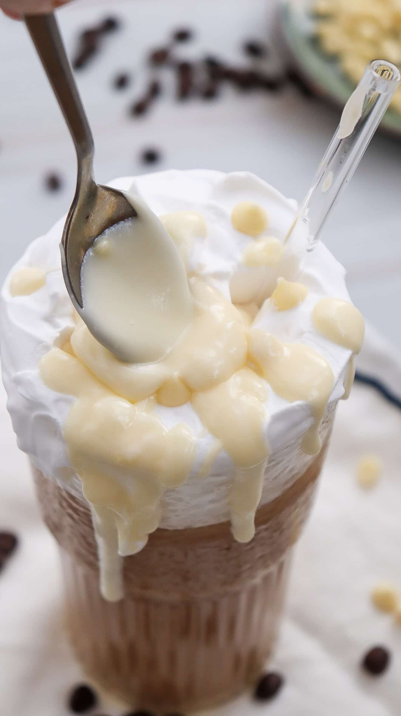For the Iced White Chocolate Mocha: