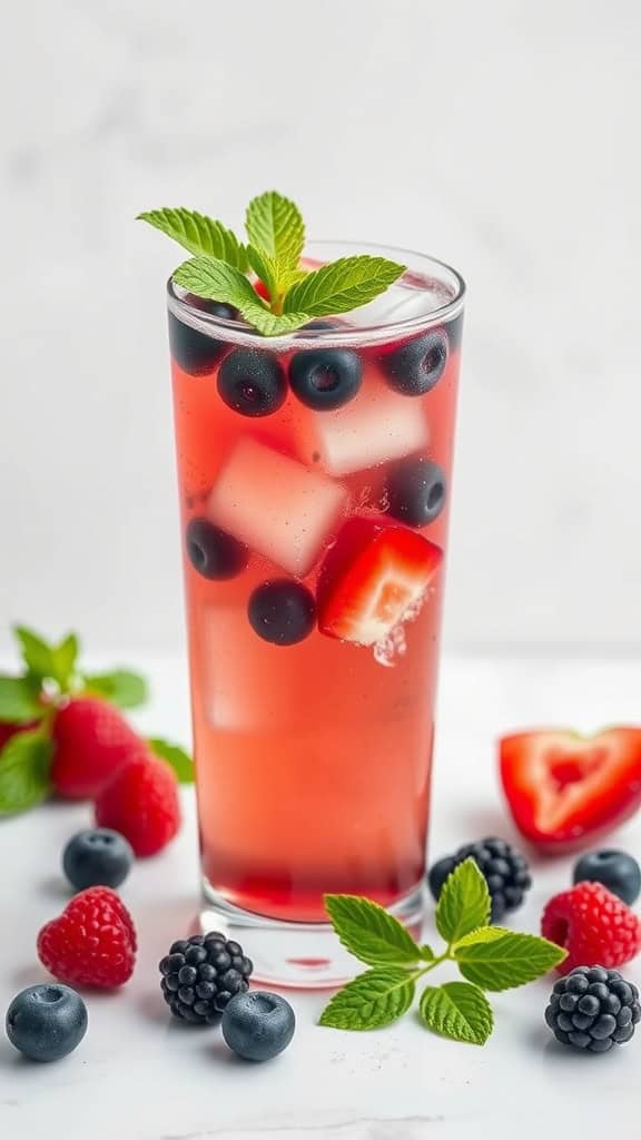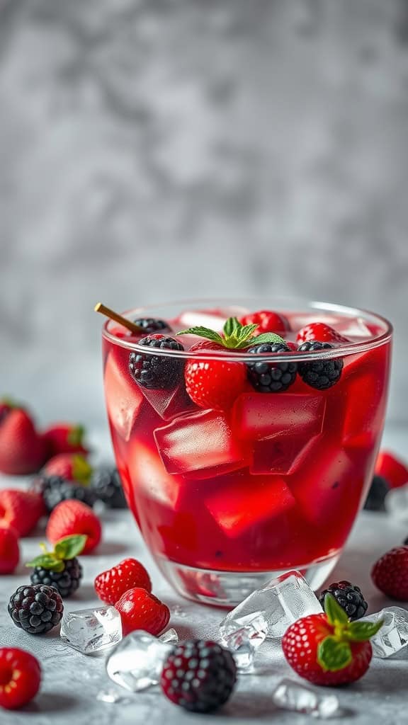 - Serve: Fill glasses with ice cubes, then pour the berry mixture over the ice. Top each glass with sparkling water for a fizzy touch.