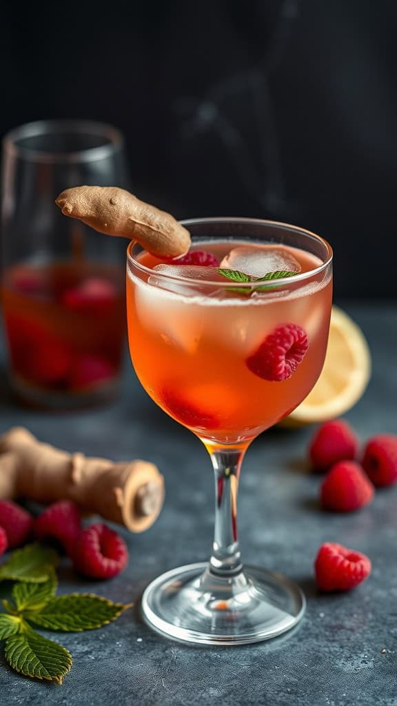 - Muddle the Raspberries: In a glass or cocktail shaker, muddle the fresh raspberries and grated ginger together until well combined.