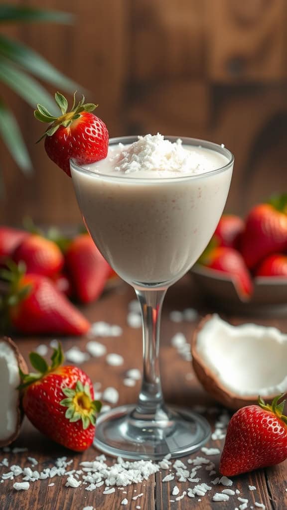 This drink not only looks stunning with its vibrant pink and red hues, but it also tastes like a tropical getaway. The combination of fresh strawberries and coconut creates a light, fruity flavor that’s sure to impress. Whether you’re hosting a gathering or just want to treat yourself, this mocktail is a charming choice.