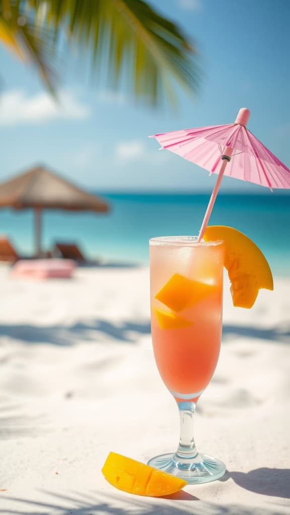 - Garnish with fresh mango slices and a maraschino cherry if desired.